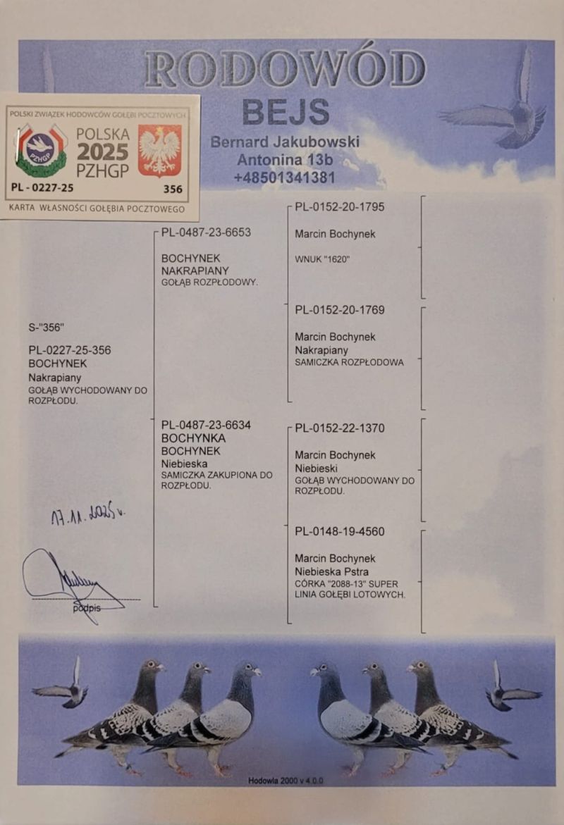 Płeć: młody gołąb Hodowca - rasa: oryg. Bernard Jakubowski Zakończenie: 25.12.2025 godz. 16:42