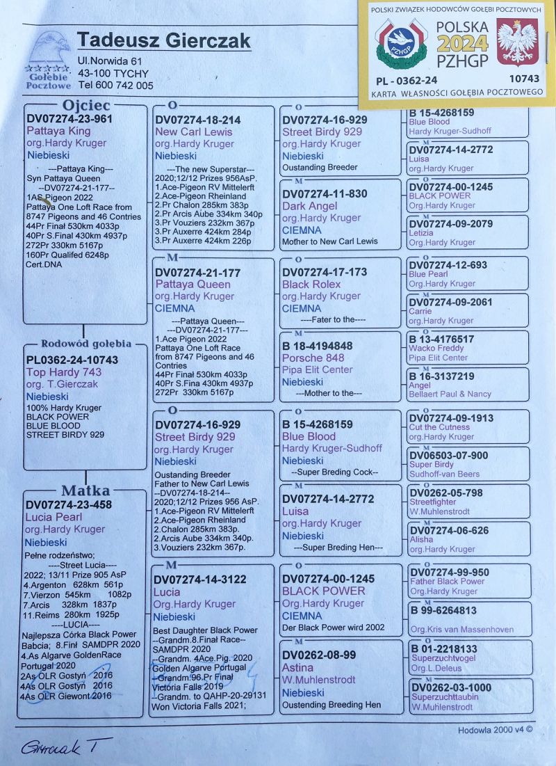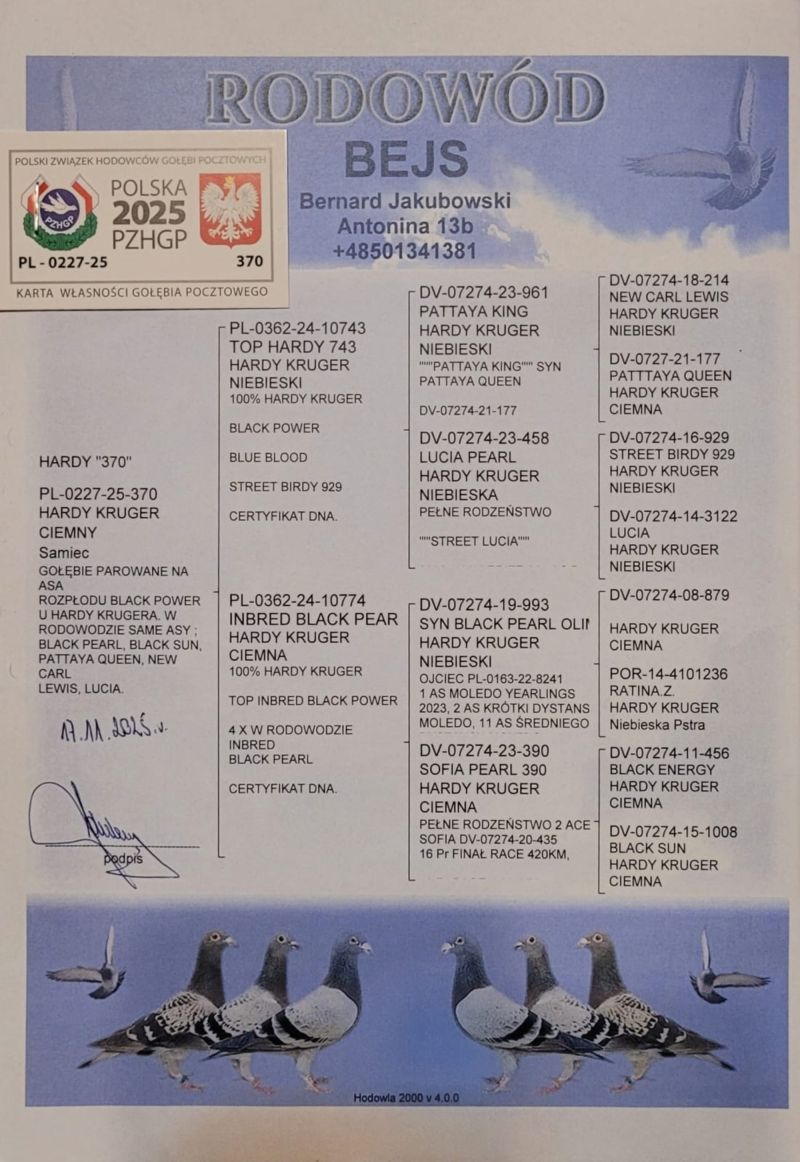 Płeć: młody gołąb Hodowca - rasa: oryg. Bernard Jakubowski Zakończenie: 25.12.2025 godz. 16:34