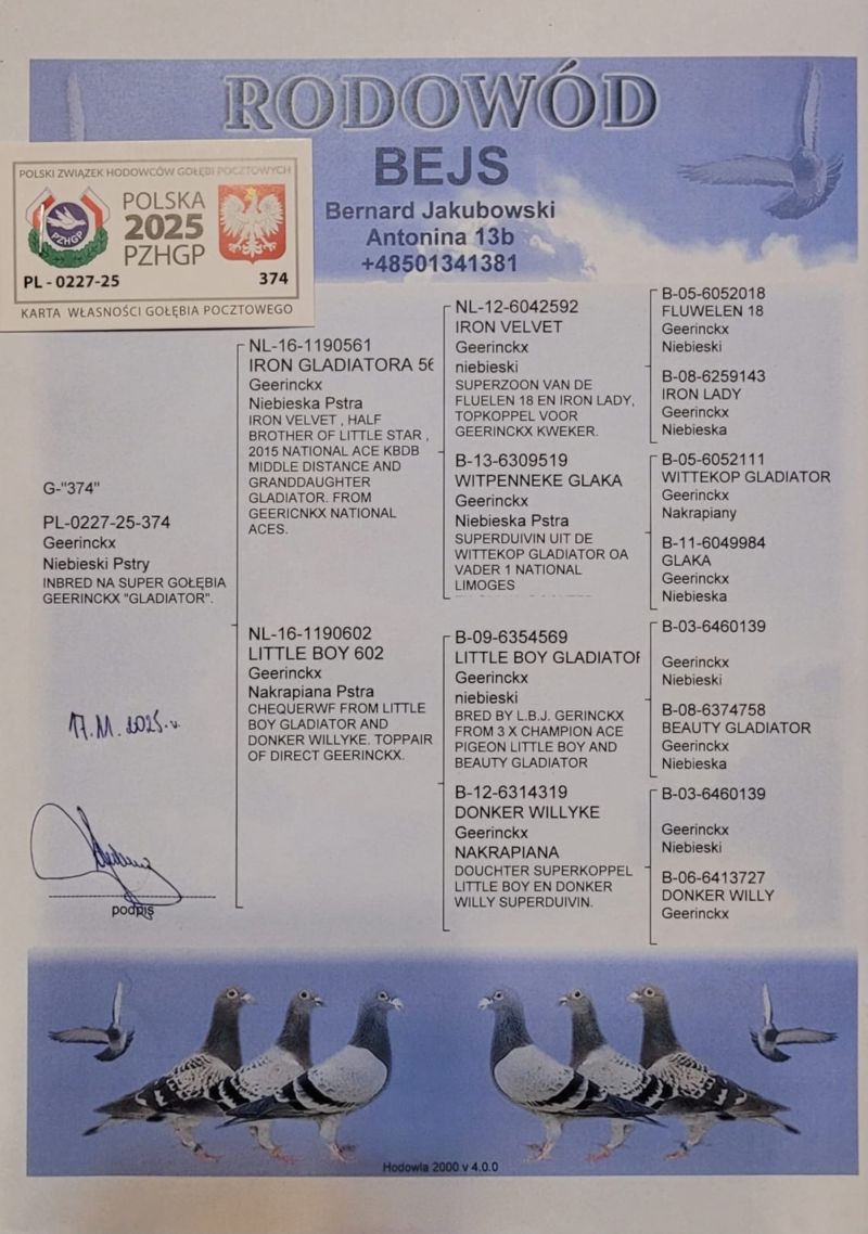 PL-0227-25-374 inbred GLADIATOR 100% Geerinckx