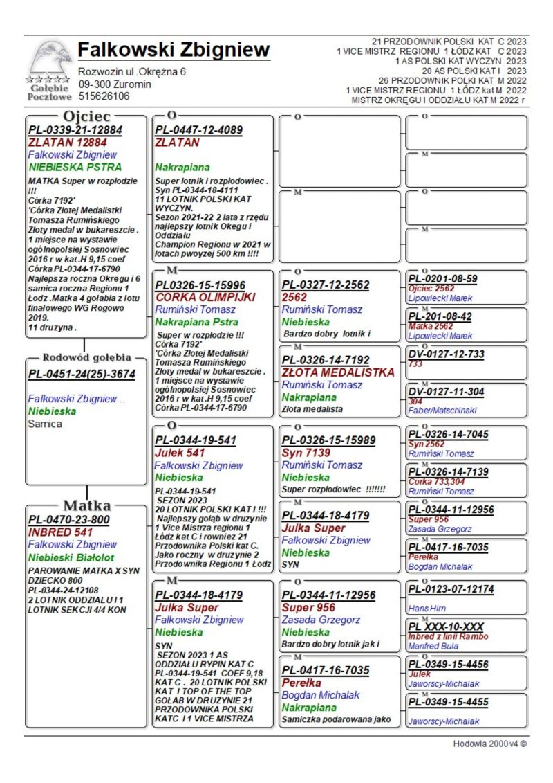 Oryginalny gołąb z hodowli Zbigniewa Falkowskiego. Więcej informacji w rodowodzie oraz pod numerem telefonu: 515 626 106
