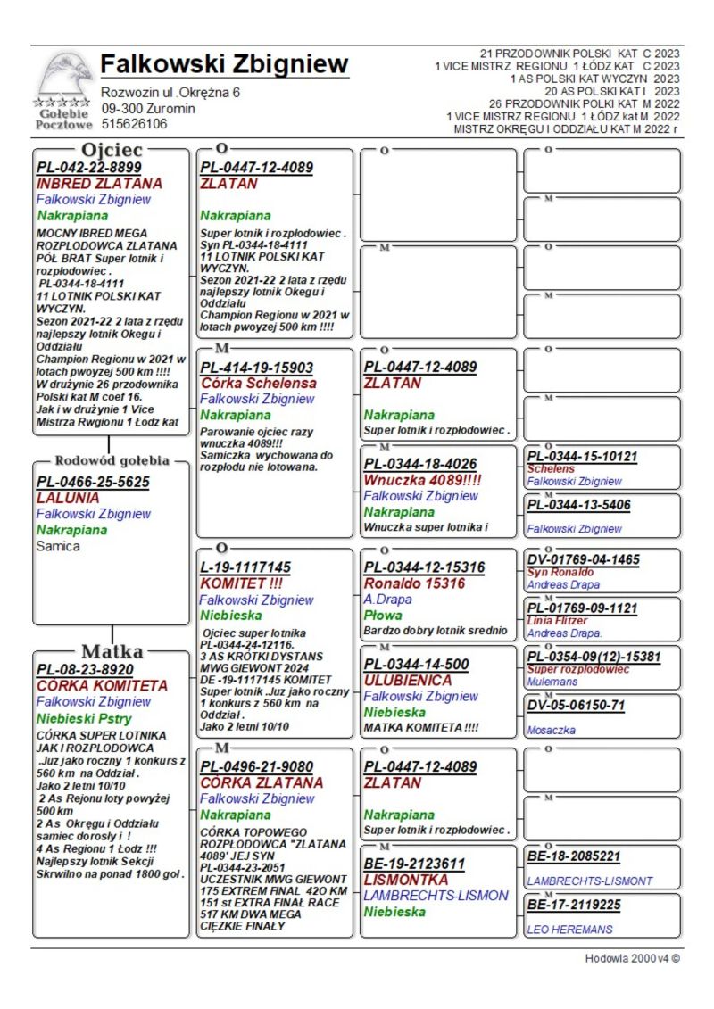 Oryginalny gołąb z hodowli Zbigniewa Falkowskiego. Więcej informacji w rodowodzie oraz pod numerem telefonu: 515 626 106