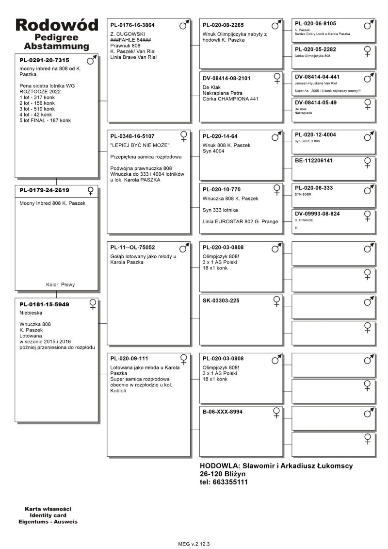 Oryginalny gołąb z hodowli A.S.Łukomscy. Więcej informacji w rodowodzie lub pod nr telefonu 663355111. Wysyłka w kwocie 130 zł, po wpłacie na konto lub przekazem pocztowym.