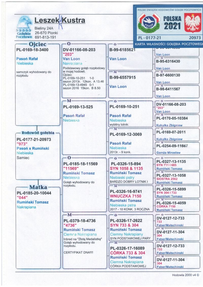 PL-0177-21-20973 R. Pasoń syn 203 x T. Rumiński-inbred złotej medalistki
