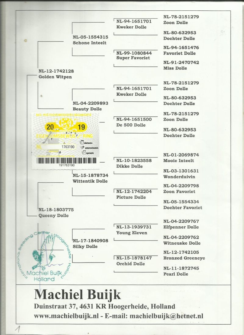Mamy Państwu do zaoferowania samca NL-19-1763190 - org Machiel Buijk linia Dolle. Więcej informacji pod numerem 502 283 650.