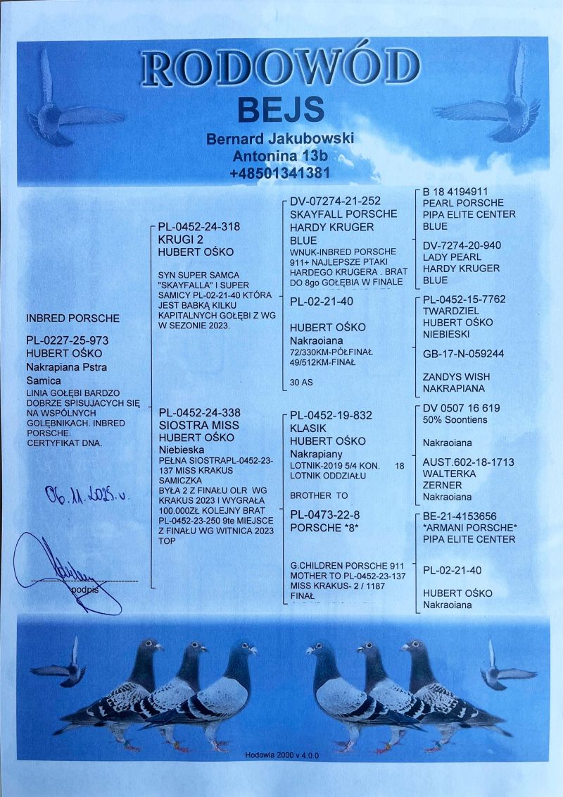 PL-0227-25-973 inbred PORSCHE 911 100% Hubert Ośko - certyfikat DNA