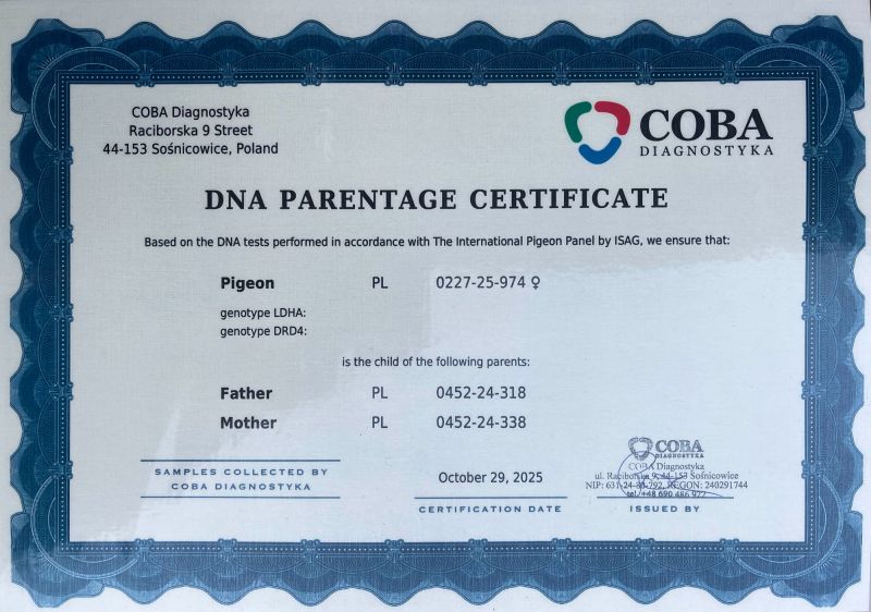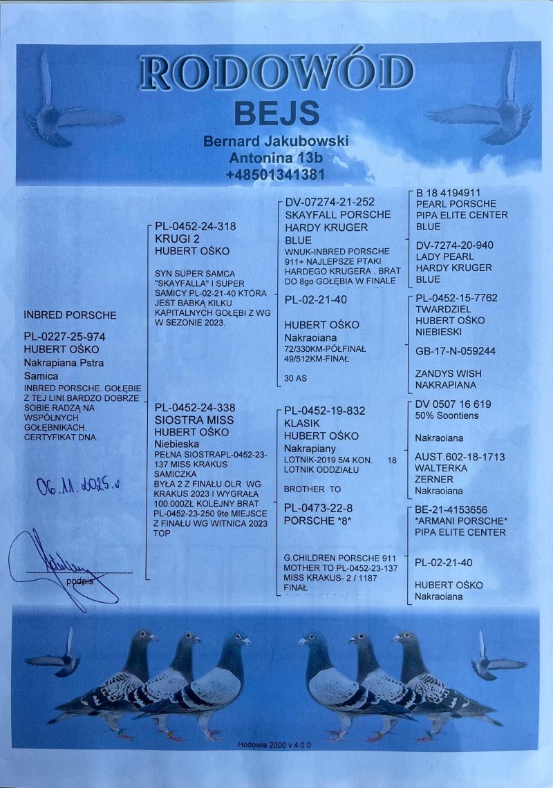 PL-0227-25-974 PORSCHE x WALTERKA 100% Hubert Ośko - certyfikat DNA