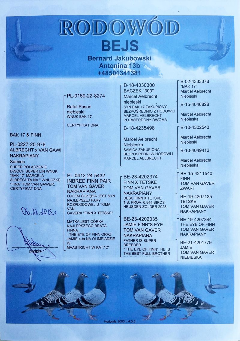 PL-0227-25-978 BAK x FINN Marcel Aelbrecht x Tom van Gaver - certyfikat DNA
