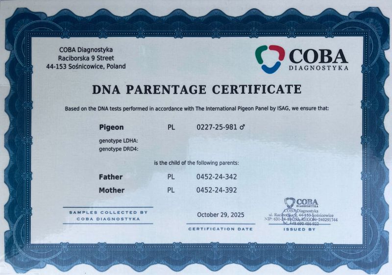 Płeć: samiec Hodowca - rasa: oryg. Bernard Jakubowski Zakończenie: 26.12.2025 godz. 16:48