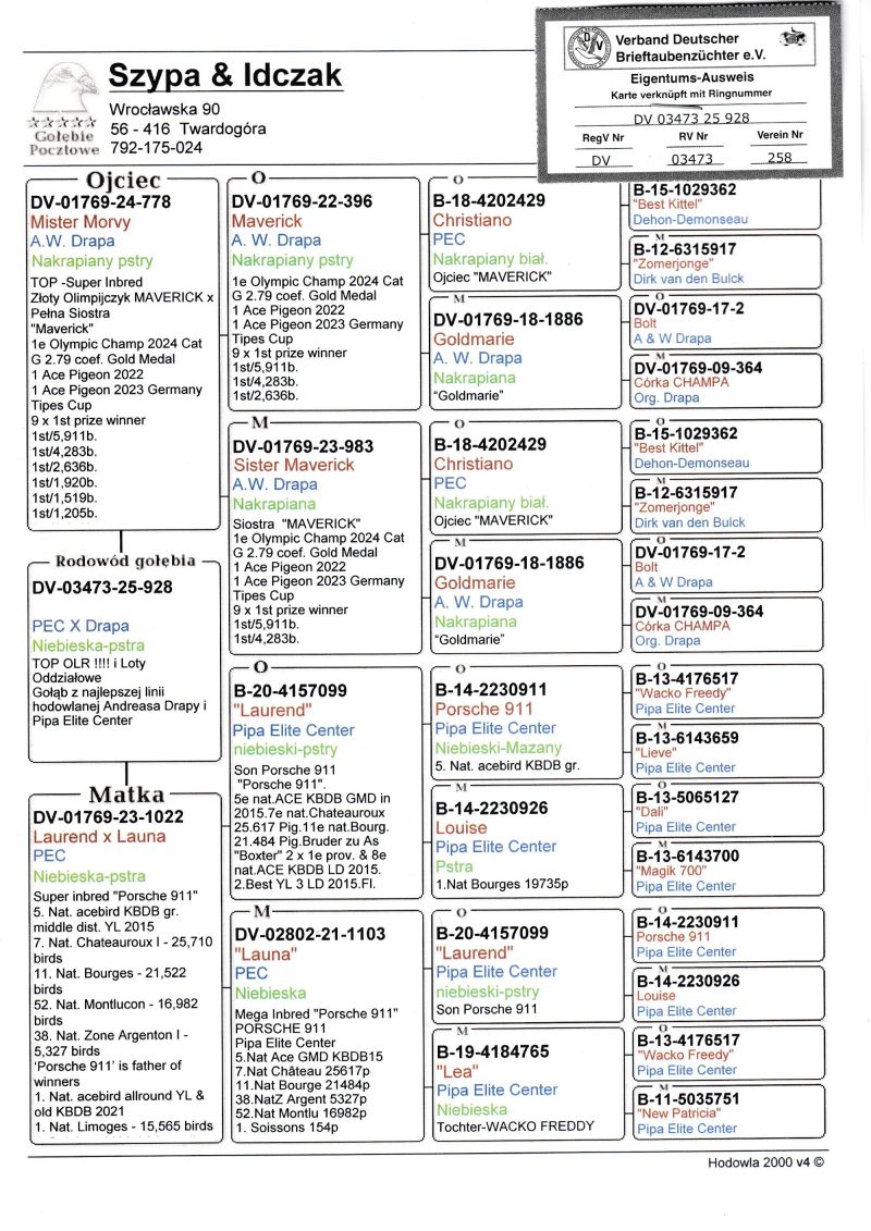 Profesjonalna hodowla z wieloletnim doświadczeniem, posiadająca w swoim stadzie materiał najwyższej światowej klasy. Więcej informacji w załączonych materiałach oraz pod nr tel. 792-175-024 Oferowany gołąb to prawdopodobnie SAMICA. Płeć pisana orientacyjnie Wysyłka 100 zł