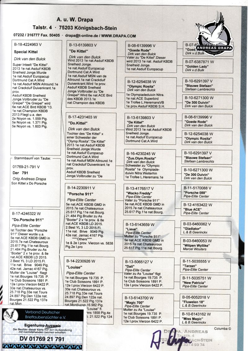 Profesjonalna hodowla z wieloletnim doświadczeniem, posiadająca w swoim stadzie materiał najwyższej światowej klasy. Więcej informacji w załączonych materiałach oraz pod nr tel. 792-175-024 Oferowany gołąb to prawdopodobnie SAMIEC. Płeć pisana orientacyjnie Wysyłka 100 zł