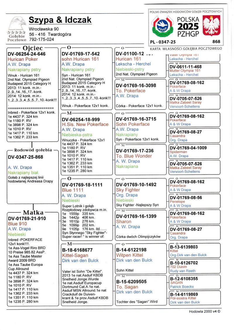 Profesjonalna hodowla z wieloletnim doświadczeniem, posiadająca w swoim stadzie materiał najwyższej światowej klasy. Więcej informacji w załączonych materiałach oraz pod nr tel. 792-175-024 Oferowany gołąb to prawdopodobnie SAMIEC. Płeć pisana orientacyjnie Wysyłka 100 zł