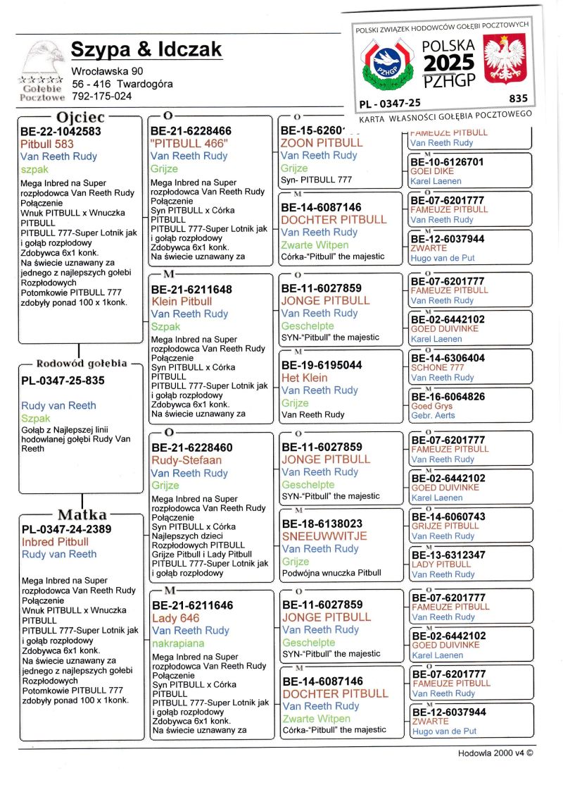 Profesjonalna hodowla z wieloletnim doświadczeniem, posiadająca w swoim stadzie materiał najwyższej światowej klasy. Więcej informacji w załączonych materiałach oraz pod nr tel. 792-175-024 Oferowany gołąb to prawdopodobnie SAMIEC. Płeć pisana orientacyjnie Wysyłka 100 zł