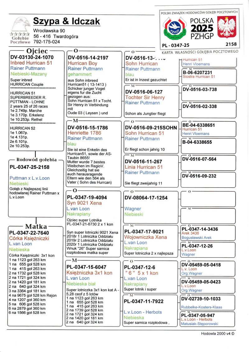PL-0347-25-2158 INBRED HURRICAN 51 X WAGNER