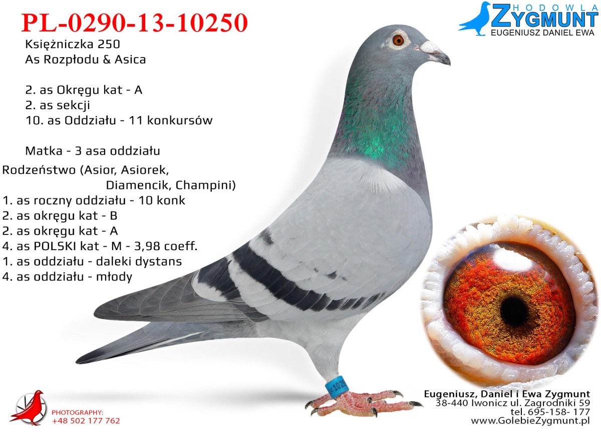 Matka - KSIĘŻNICZKA 250 – 2. lotnik Okręgu kat. A, 10. As oddziału, matka i siostra gołębi mistrzowskich.