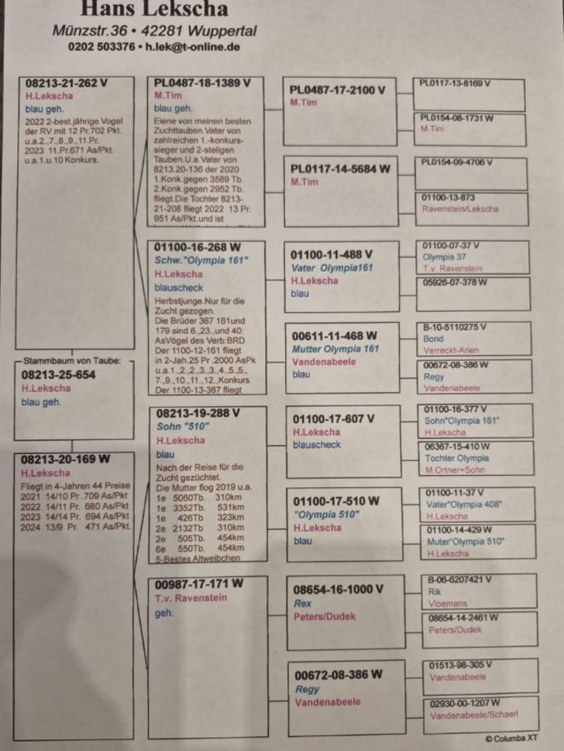 Oryg.Gołąb z hodowli Hans Lekscha .Znalazł sie na aukcji dzięki uprzejmości kolegi Piotr Kuta.Szczegóły pochodzenia w rodowodzie lub pod nr.tel.607 707 001 ( Odbiór gołąbka na wystawie w Katowicach)