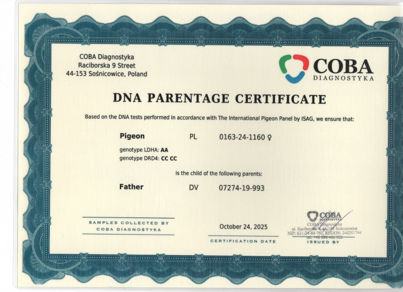 Płeć: samica Hodowca - rasa: Grzegorz Szczoczarz Zakończenie: 30.12.2025 godz. 21:26