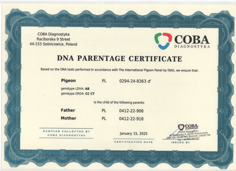 Płeć: samiec Hodowca - rasa: Grzegorz Szczoczarz Zakończenie: 30.12.2025 godz. 21:28