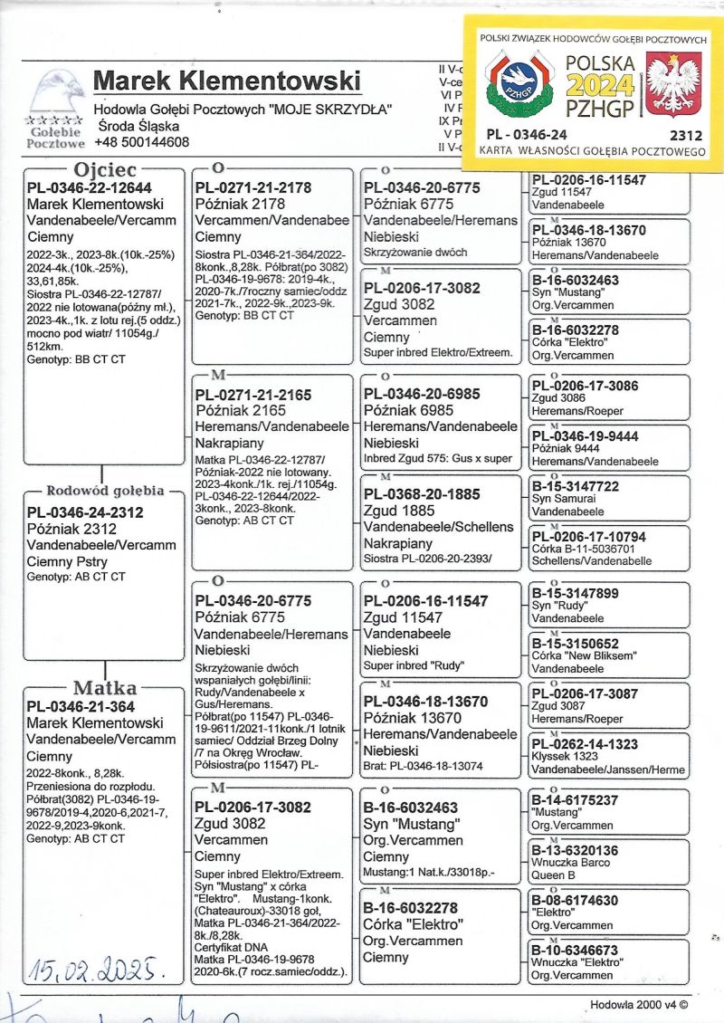 Płeć: młody gołąb Hodowca - rasa: G.M Zakończenie: 1.01.2026 godz. 17:50