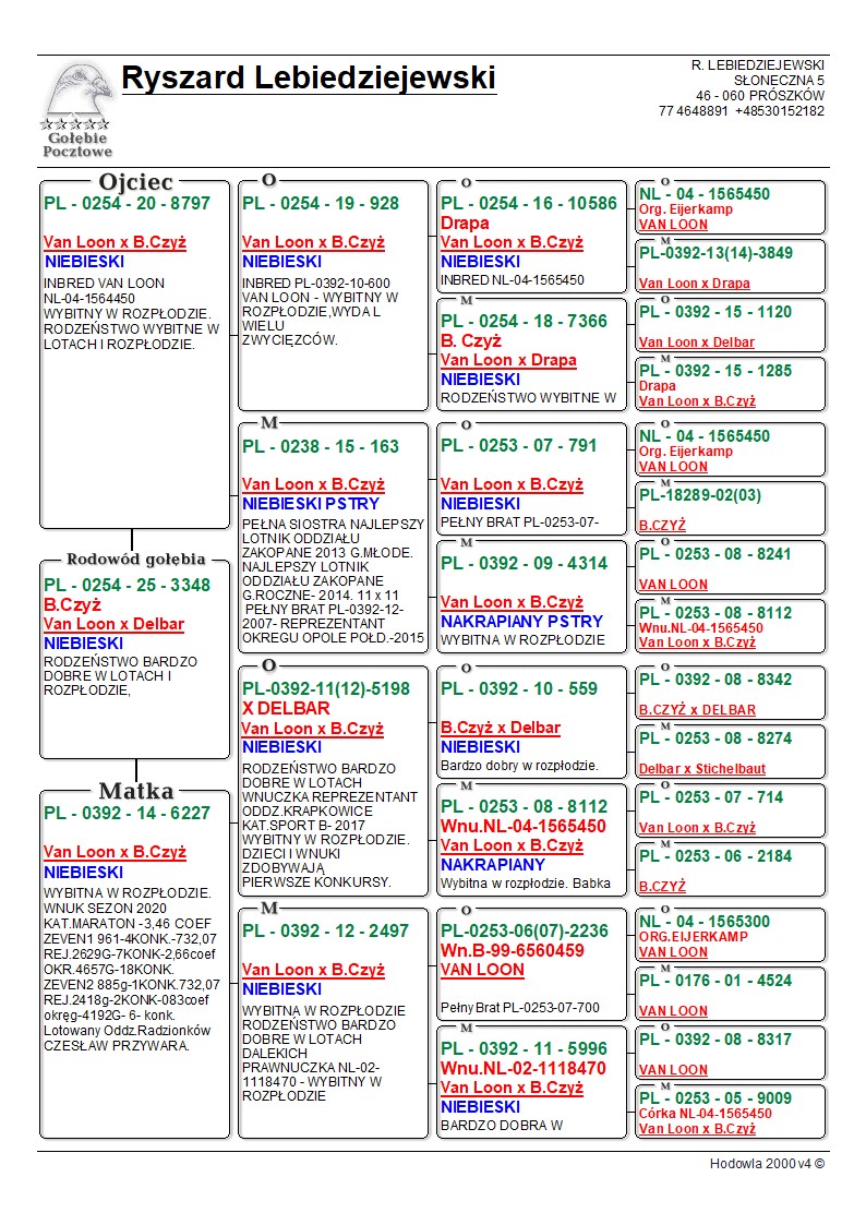 *prawdopodobnie samiec** Oryginalny gołąb z hodowli Ryszard Lebiedziejewskiego. Szczegóły pochodzenia w rodowodzie. Więcej informacji pod nr tel.: 530 152 182. **Gołębie po kuracjach przygotowane do sezonu. **Transport gołębi prywatnym kurierem 130 zł do 3 szt. od 4szt do 6szt 150zł. Możliwość odbioru na Ogólnopolskiej Wystawie Gołębi Pocztowych w Katowicach, w sobotę (10.01.2026r)