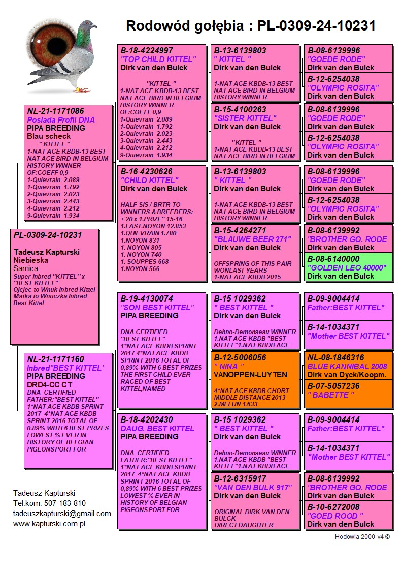 Oryginalny gołąb z hodowli Tadeusza Kapturskiego. Szczegóły pochodzenia w rodowodzie. Więcej informacji pod nr tel.: 507183810 *transport kurier 165 zł *na życzenie certyfikat DNA