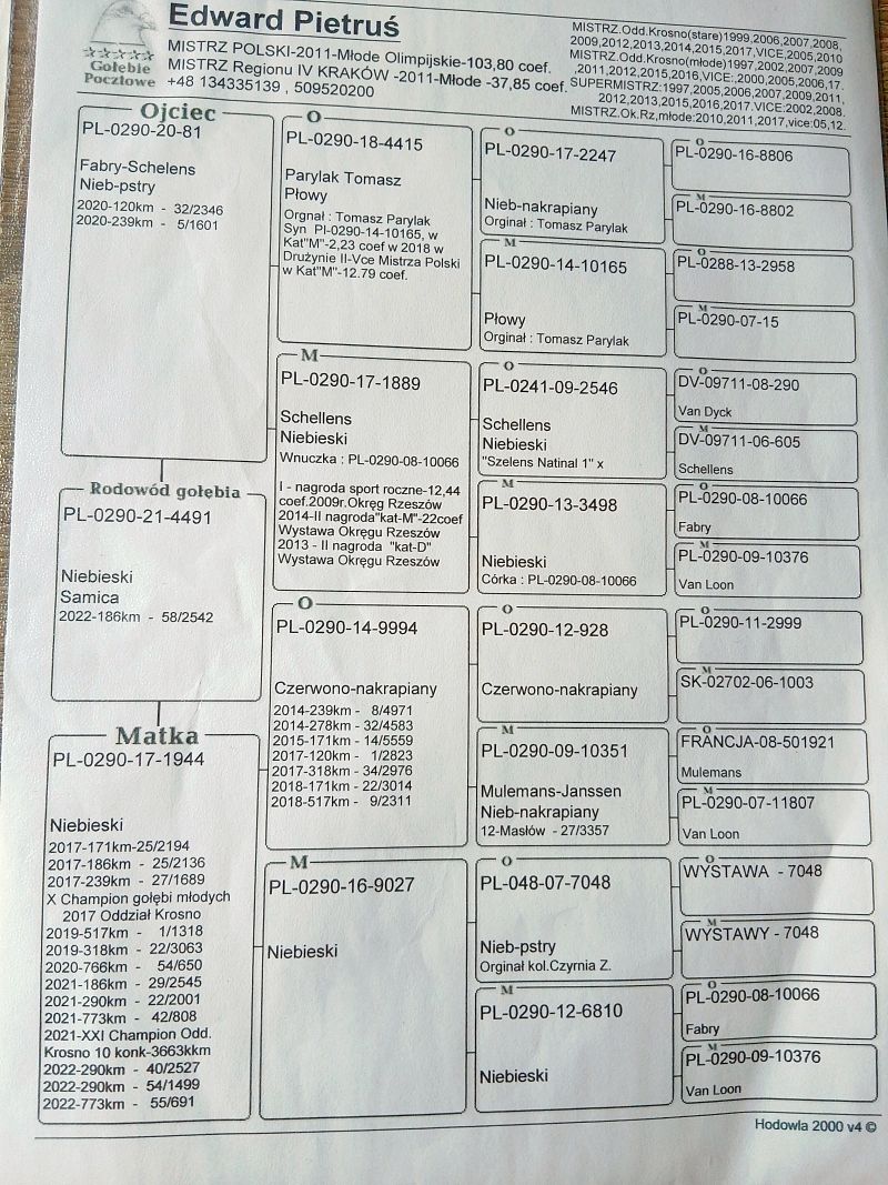 Oryginalny gołąb z hodowli Edwarda Pietrusia. Szczegóły pochodzenia w rodowodzie. Więcej informacji pod nr tel.: 539 388 801 *możliwość wysyłki lub odbioru gołębia na wystawie w Katowicach (sobota)