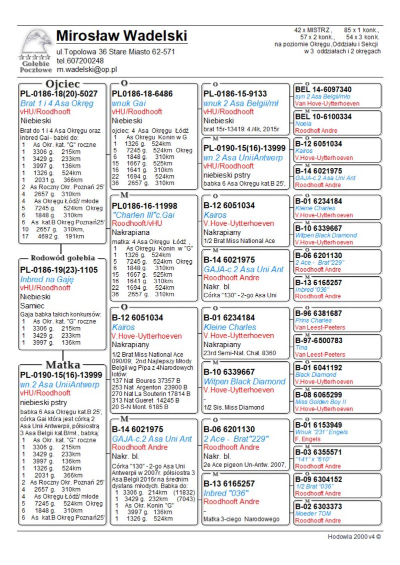 PL-0186-19(23)-1105 mocny inbred na "Gaję" super rozpłodową samiczkę od Andre Roodhooft