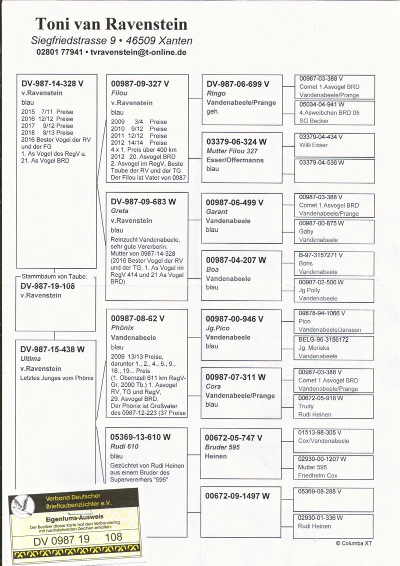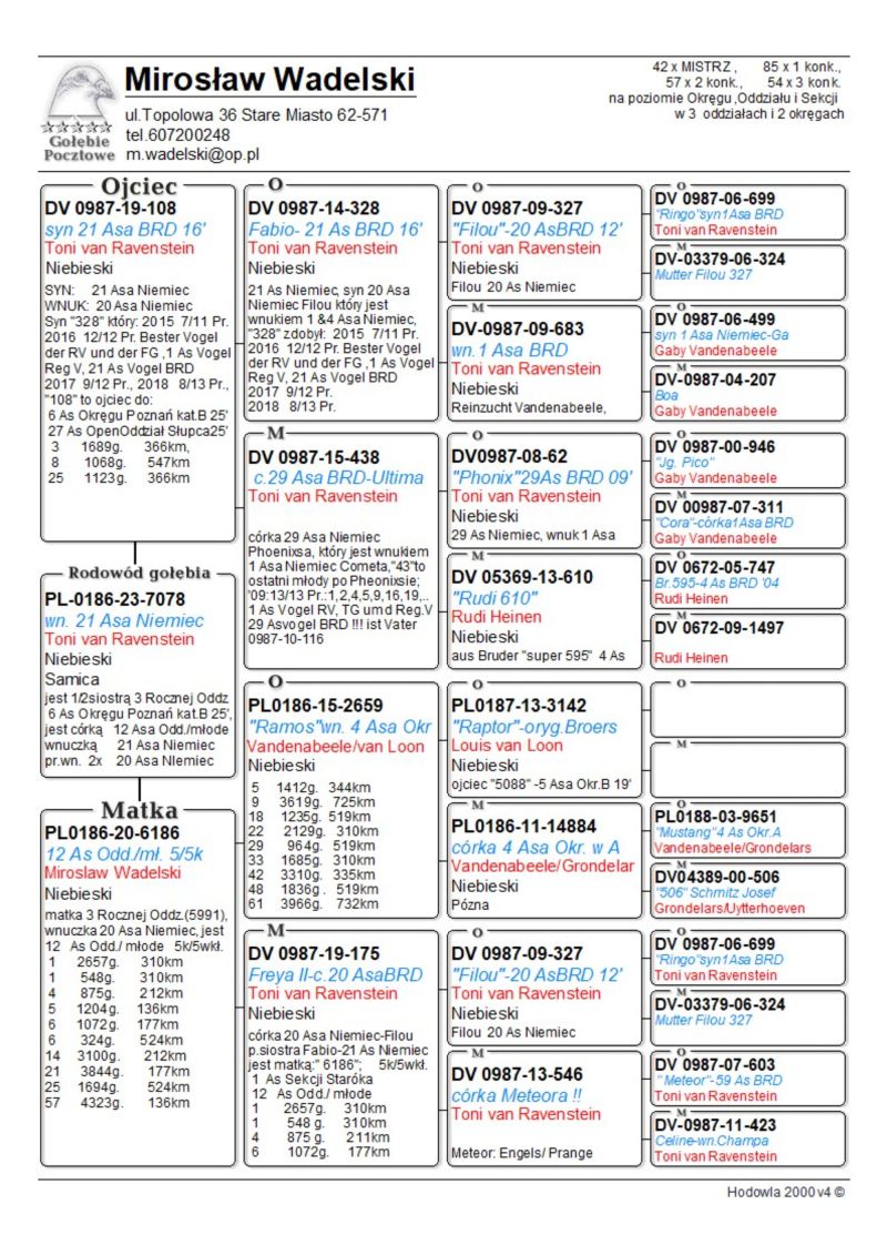Załączyłem dodatkowo rodowód dv 240 (Freya) bo jest to pełna siostra babki tj."175", w celach informacyjnych.