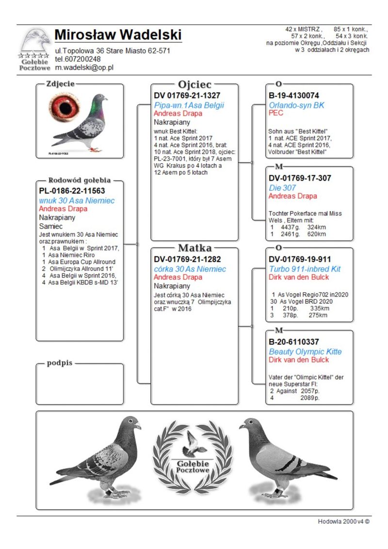 Płeć: samiec Hodowca - rasa: Mirosław Wadelski Zakończenie: 31.12.2025 godz. 20:36