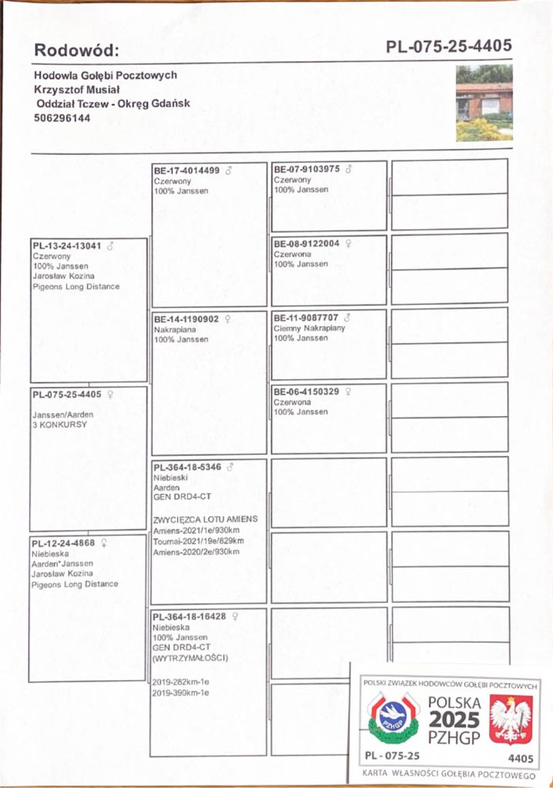 Płeć: młody gołąb Hodowca - rasa: K.Musiał Zakończenie: 31.12.2025 godz. 17:46