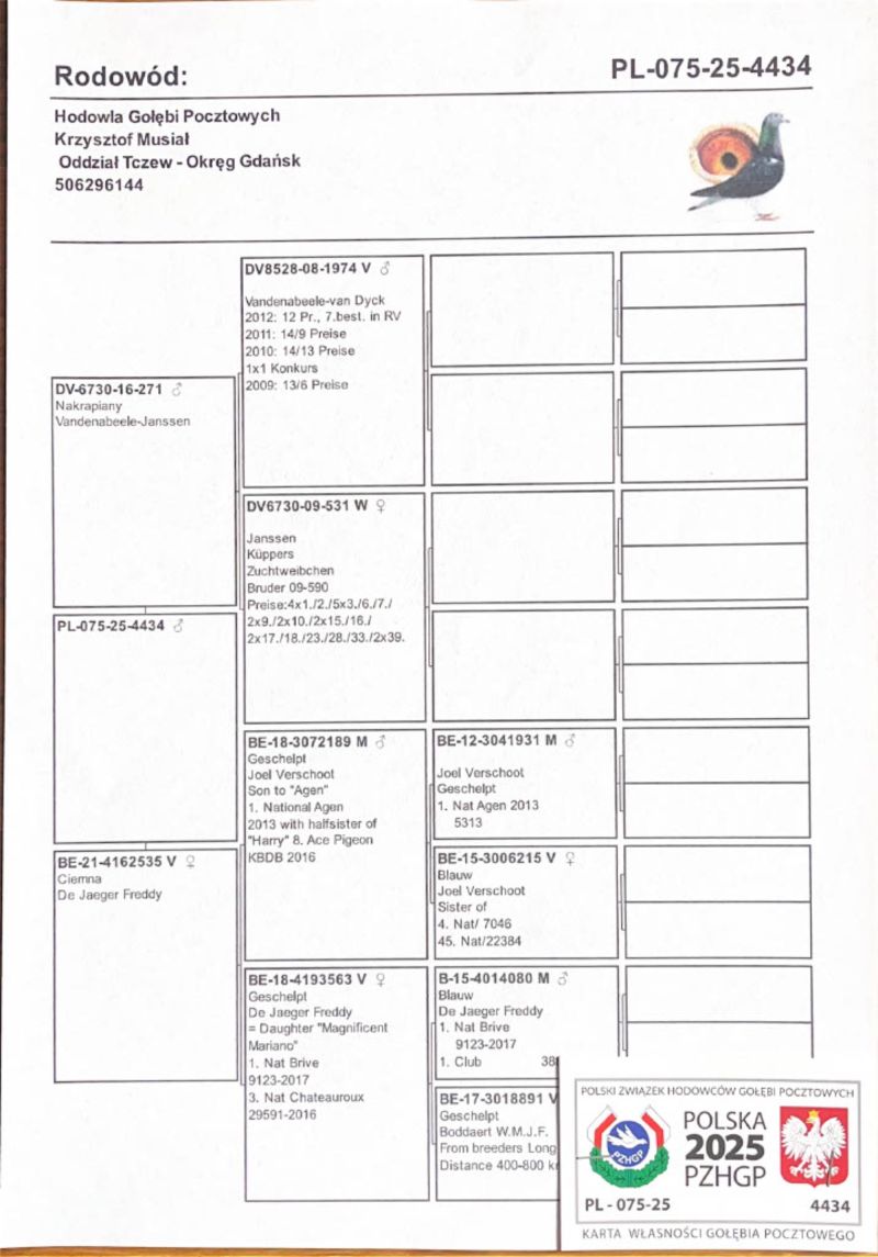Płeć: młody gołąb Hodowca - rasa: K.Musiał Zakończenie: 31.12.2025 godz. 17:28