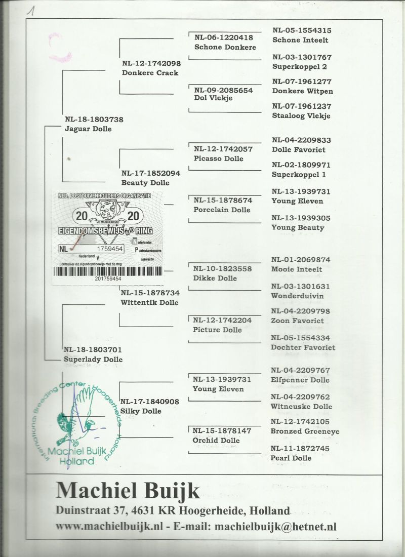 Mamy Państwu do zaoferowania gołębia PL-0318-25-7054 - org Machiel Buijk linia Dolle. Więcej informacji pod numerem 502 283 650.