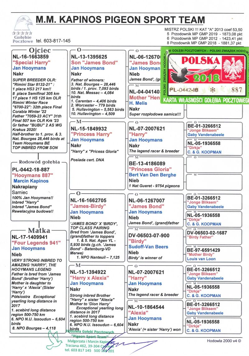 PL-0442-18-887 100% Jan Hooymans, Inbreed Harry