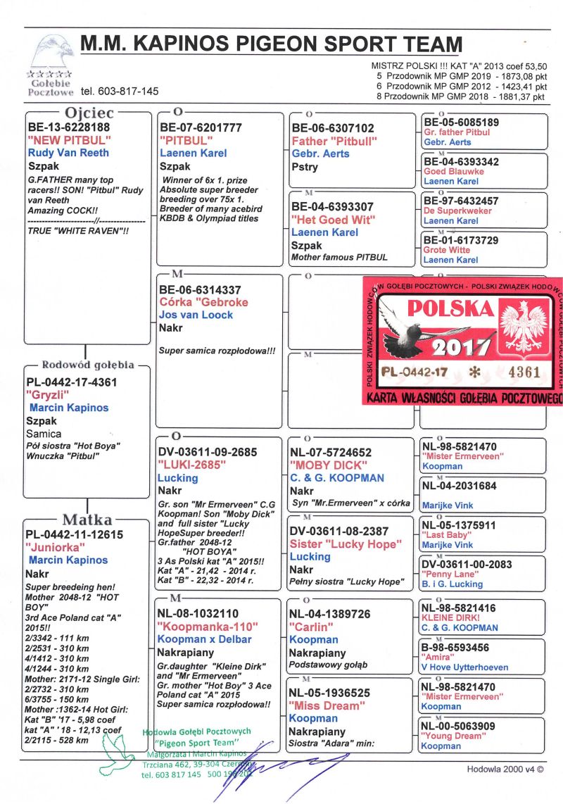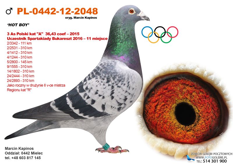 Uwaga! Możliwość odbioru na wystawie w Katowicach w dniach 9-11.01.2026 po wcześniejszej wpłacie na konto bankowe! Oryg. gołąb z hodowli Marcin Kapinos, szczegóły pochodzenia w rodowodzie. Kontakt w sprawie gołębi oraz transportu pod numerem telefonu 798 456 094