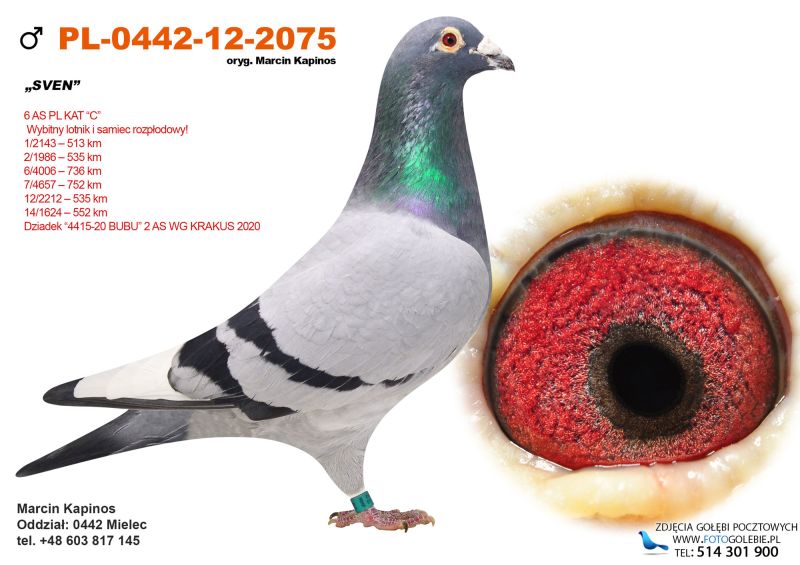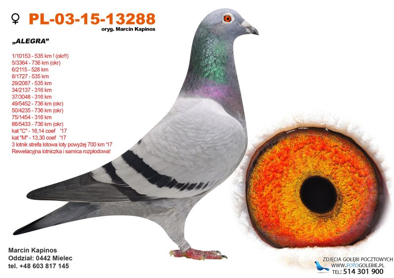 Uwaga! Możliwość odbioru na wystawie w Katowicach w dniach 9-11.01.2026 po wcześniejszej wpłacie na konto bankowe! Oryg. gołąb z hodowli Marcin Kapinos, szczegóły pochodzenia w rodowodzie. Kontakt w sprawie gołębi oraz transportu pod numerem telefonu 798 456 094