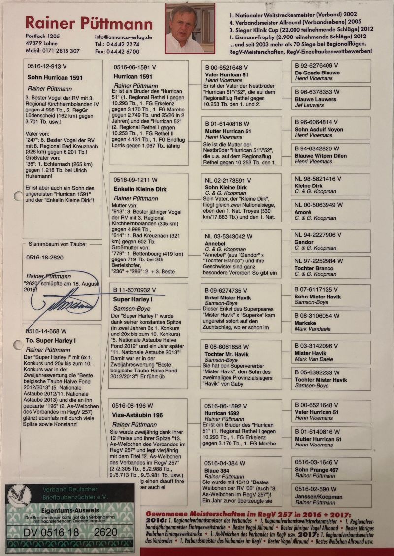 Oryginalny gołąb z hodowli Rainer Puttmann.