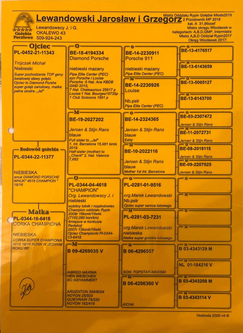 Oryginalny gołąb z hodowli Lewandowski Jarosław i Grzegorz. Więcej informacji w rodowodzie oraz pod numerem telefonu: +48 667 308 760
