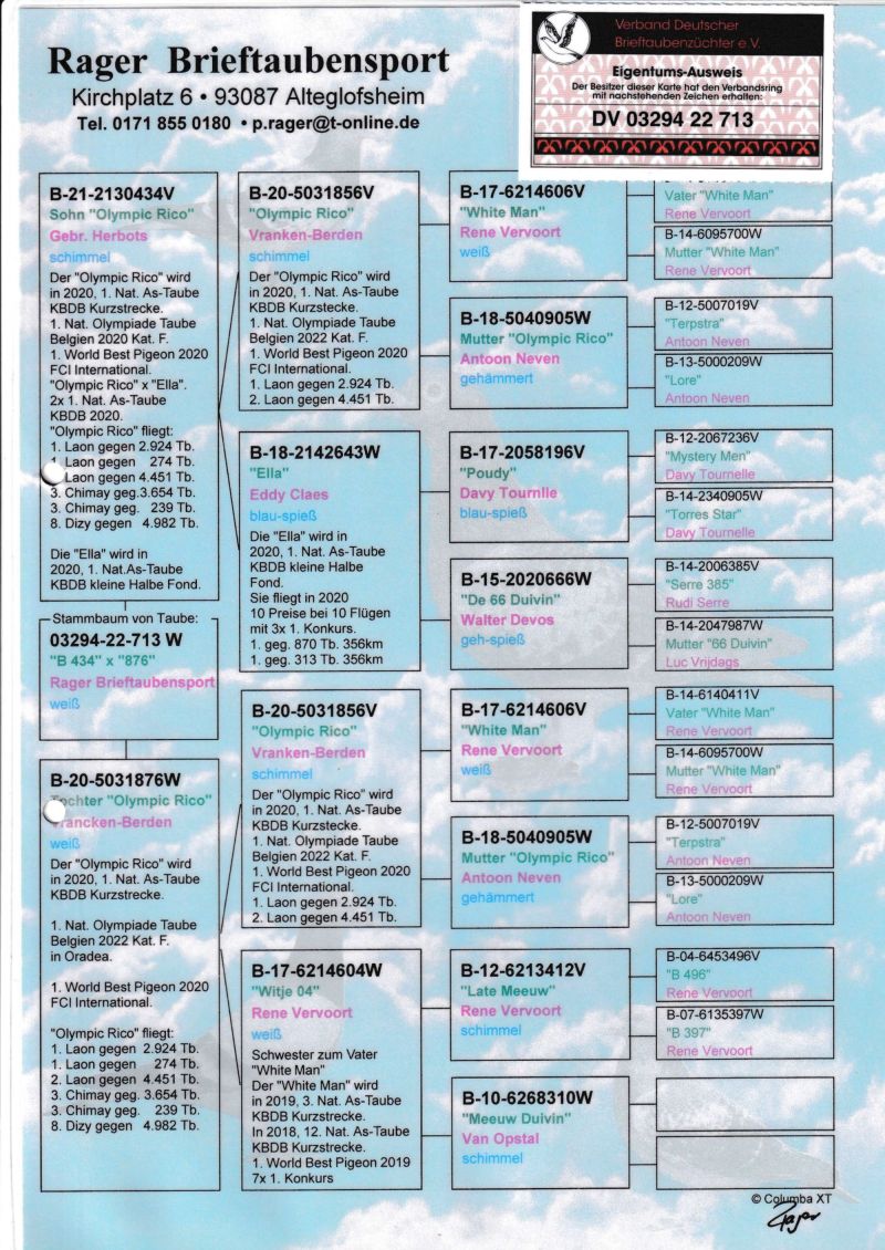 Dostawa na wystawę Ogólnopolską w sobotę gratis. Gołąb zaszczepiony przeciwko paramiksowirozie. Więcej informacji udzielę telefonicznie.