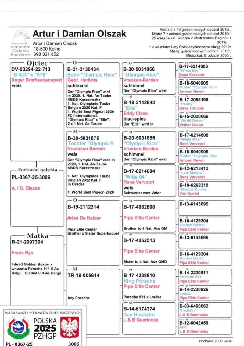 Płeć: młody gołąb Hodowca - rasa: Oryg. Artur i Damian Olszak Zakończenie: 30.12.2025 godz. 16:52
