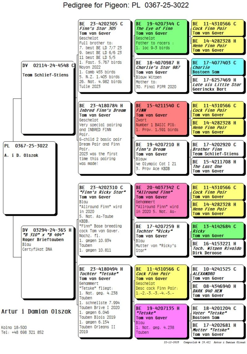 Płeć: młody gołąb Hodowca - rasa: Oryg. Artur i Damian Olszak Zakończenie: 30.12.2025 godz. 16:46
