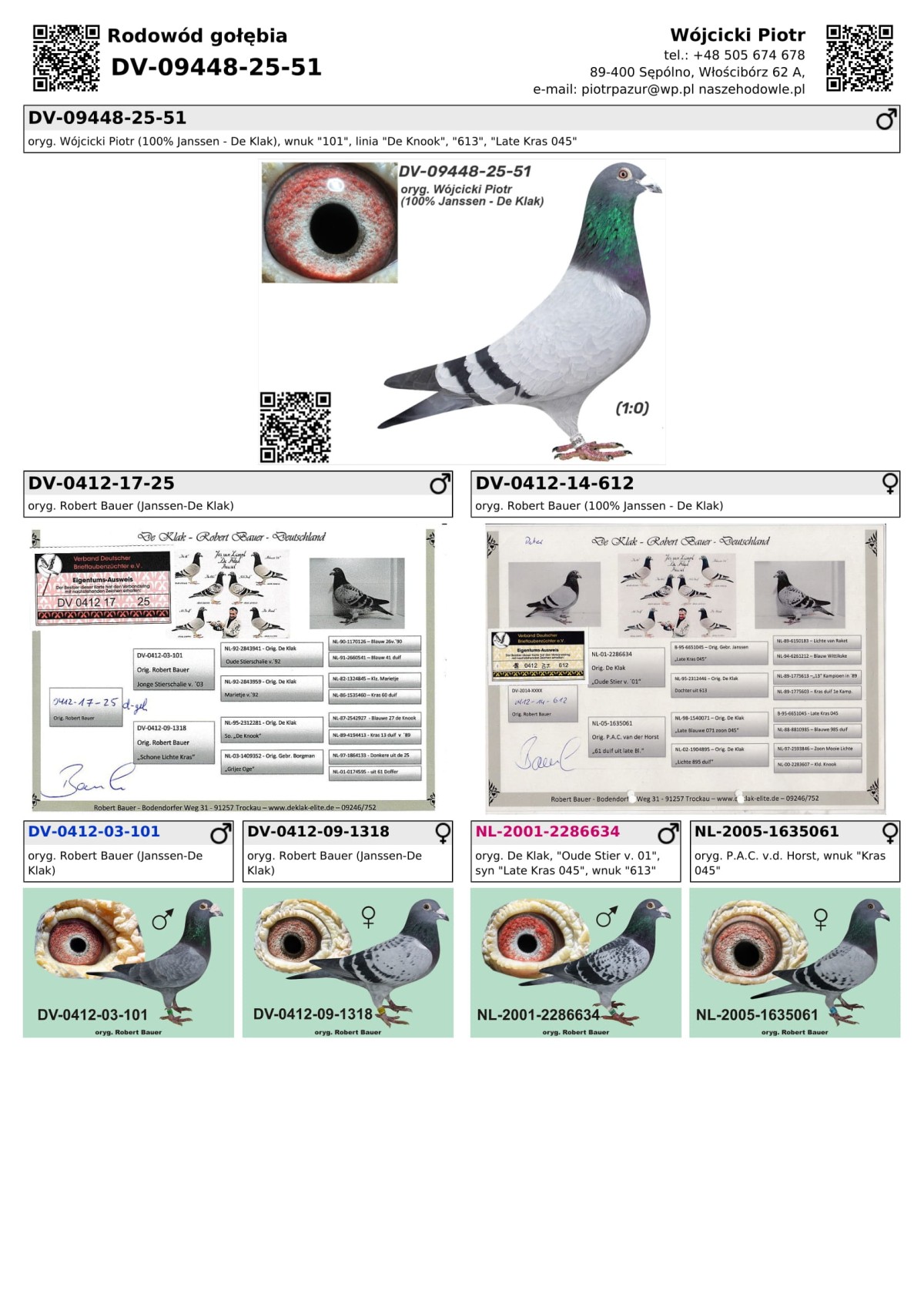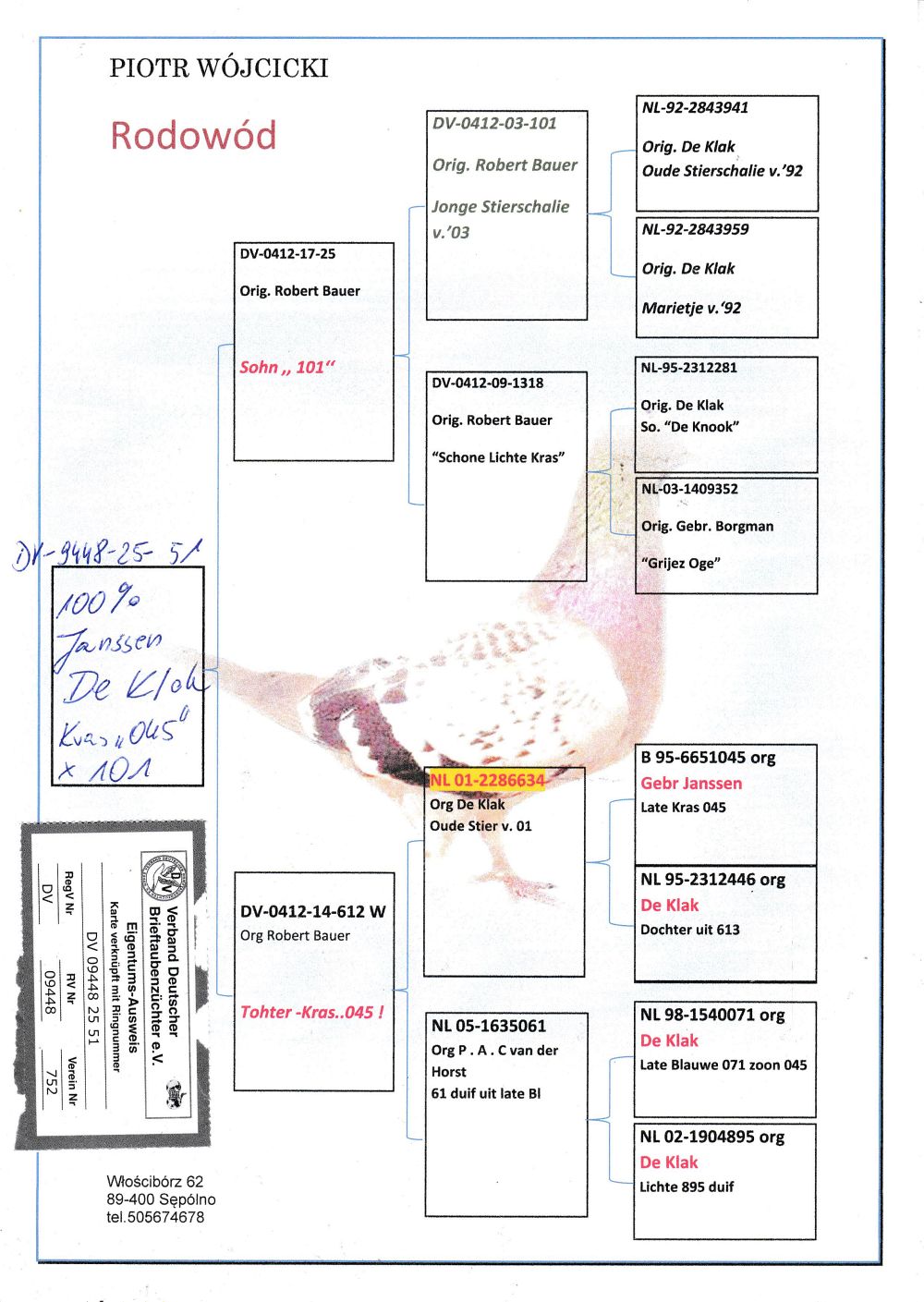 DV-09448-25-51 - oryg. Wójcicki Piotr (100% Janssen - De Klak), wnuk "101", linia "De Knook", "613", "Late Kras 045"