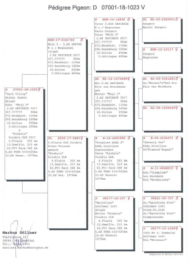 Oryginalny gołąb z hodowli Stefan Joekel. Szczegóły pochodzenia w rodowodzie. Gołąb gotowy do sezonu lęgowego, zaszczepiony przeciwko paramyksowirozie (Columba) i salmonellozie (Salmo PT). Więcej informacji pod nr tel.: 506 123 808. Wpłata za gołębia na konto po zakończeniu aukcji. Możliwy odbiór osobisty lub dostawa realizowana przez kuriera w cenie 160 zł. Możliwy także odbiór na wystawie Ogólnopolskiej w Katowicach (sobota lub niedziela).