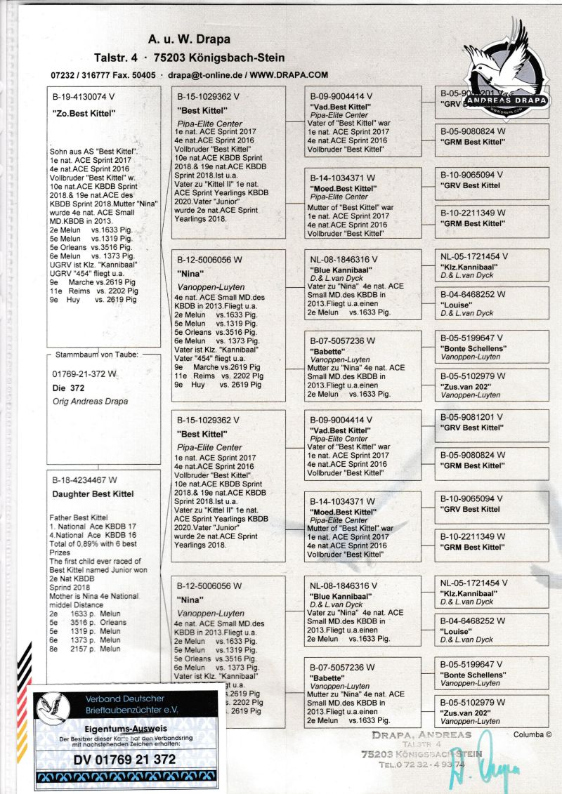 Profesjonalna hodowla z wieloletnim doświadczeniem, posiadająca w swoim stadzie materiał najwyższej światowej klasy. Więcej informacji w załączonych materiałach oraz pod nr tel. 792-175-024 Oferowany gołąb to prawdopodobnie SAMIEC. Płeć pisana orientacyjnie Wysyłka 100 zł