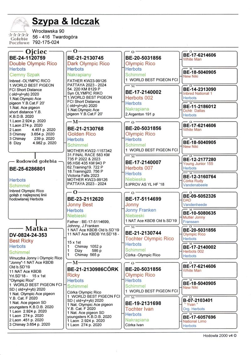 BE-25-6286801 MOCNY INBRED OLYMPIC RICO