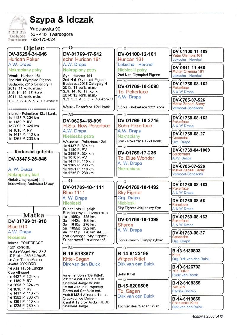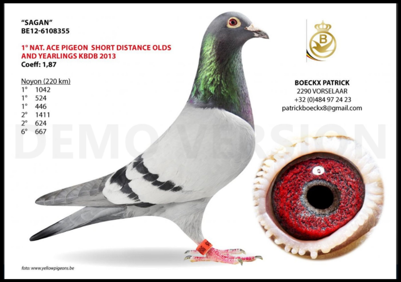 Profesjonalna hodowla z wieloletnim doświadczeniem, posiadająca w swoim stadzie materiał najwyższej światowej klasy. Więcej informacji w załączonych materiałach oraz pod nr tel. 792-175-024 Oferowany gołąb to prawdopodobnie SAMIEC. Płeć pisana orientacyjnie Wysyłka 100 zł