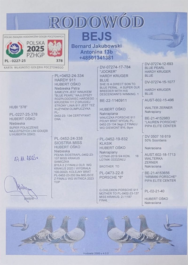 Płeć: młody gołąb Hodowca - rasa: oryg. Bernard Jakubowski Zakończenie: 27.12.2025 godz. 14:56
