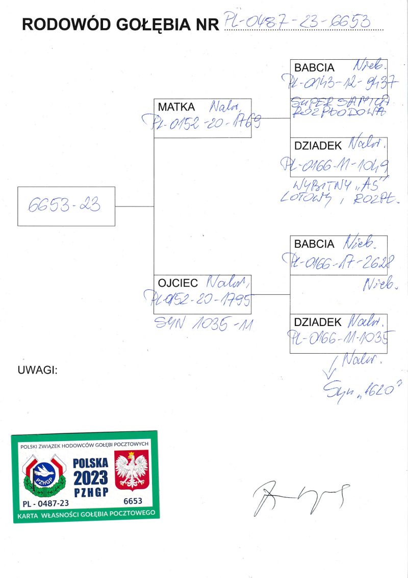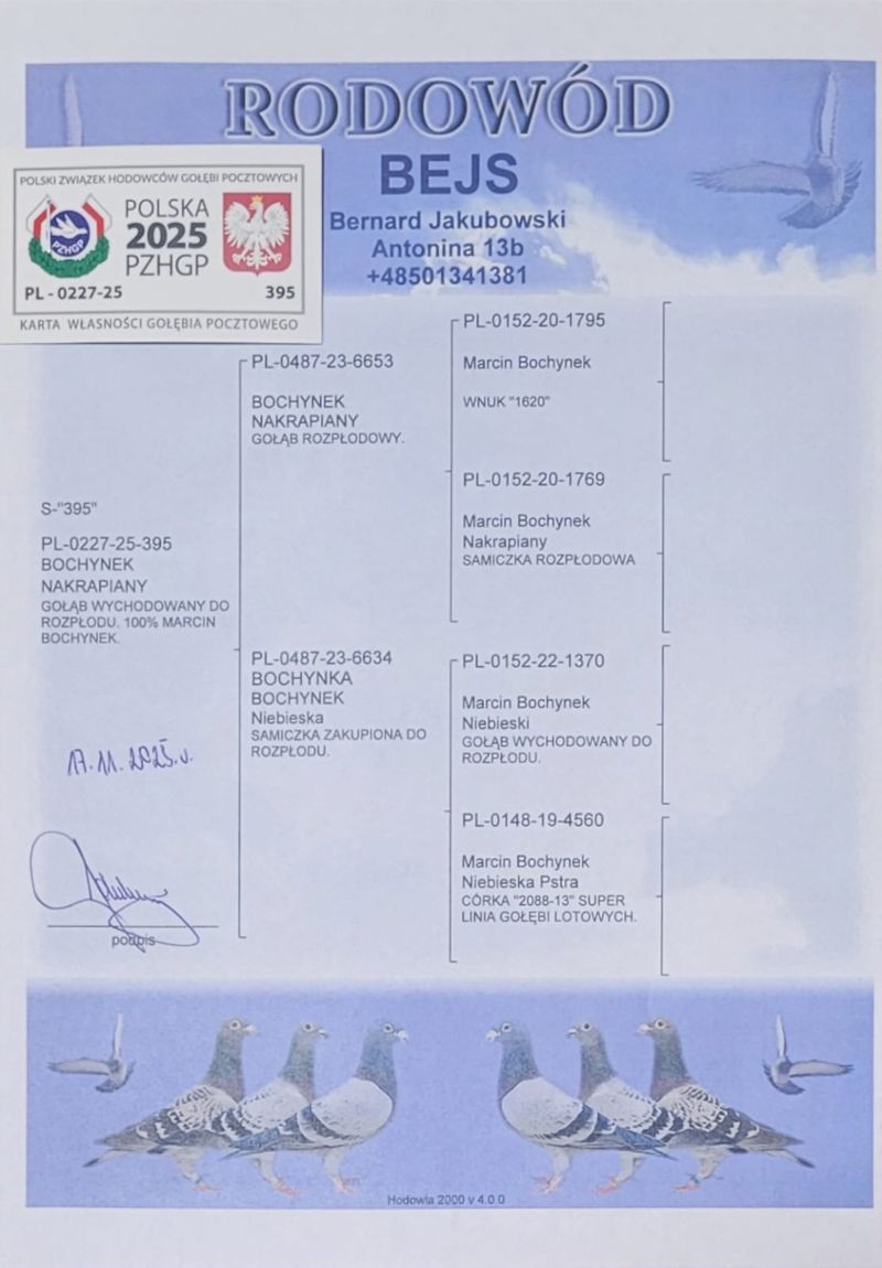 Płeć: młody gołąb Hodowca - rasa: oryg. Bernard Jakubowski Zakończenie: 27.12.2025 godz. 14:46