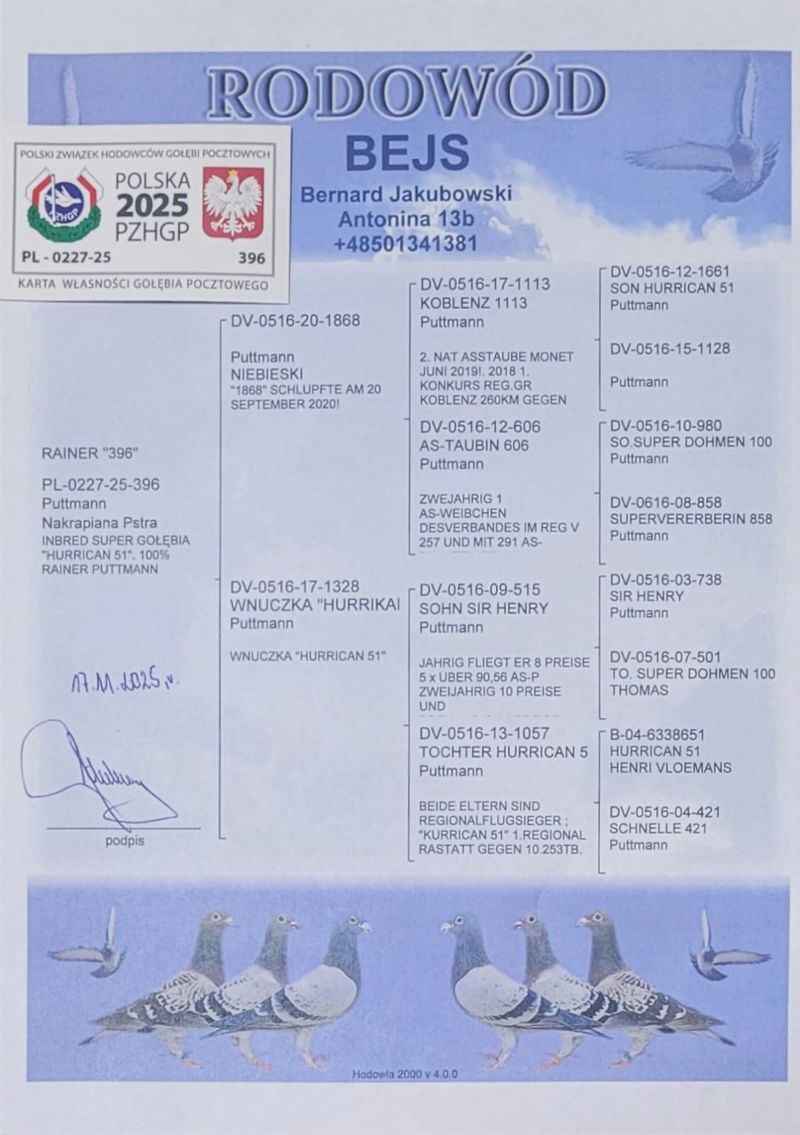 Płeć: młody gołąb Hodowca - rasa: oryg. Bernard Jakubowski Zakończenie: 27.12.2025 godz. 14:44