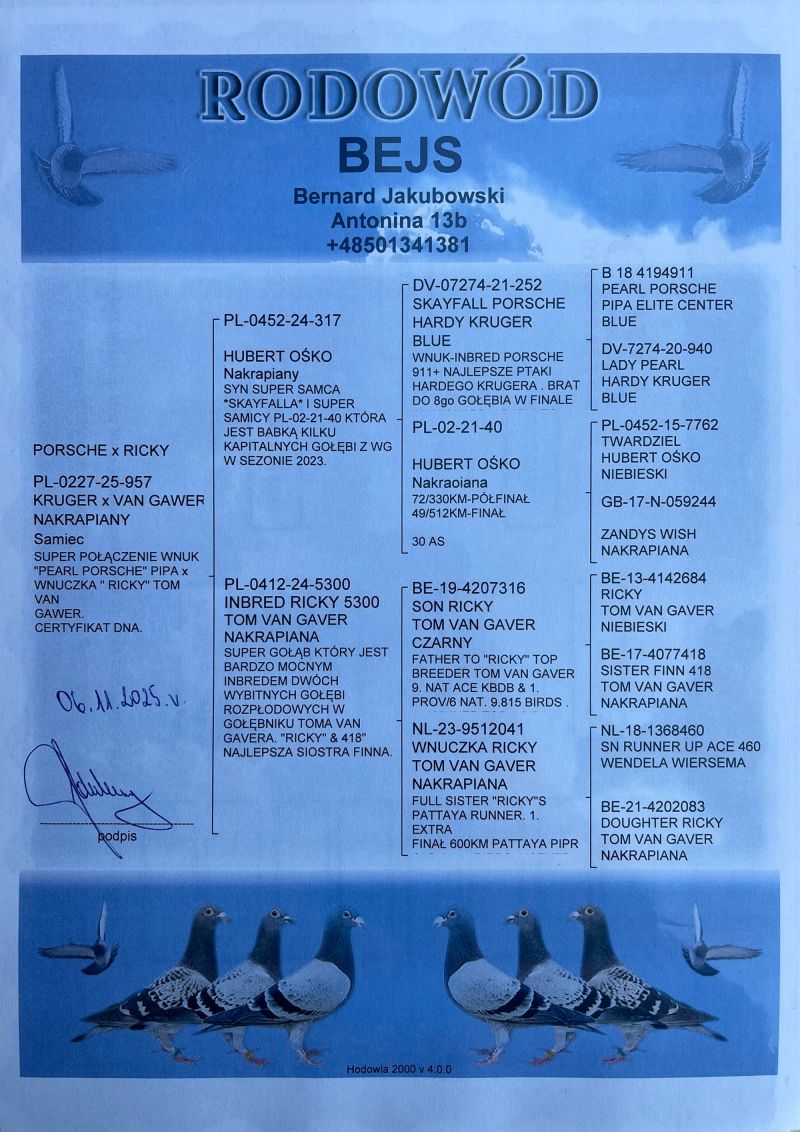 PL-0227-25-957 PORSCHE x RICKY Hubert Ośko x Tom van Gaver - certyfikat DNA