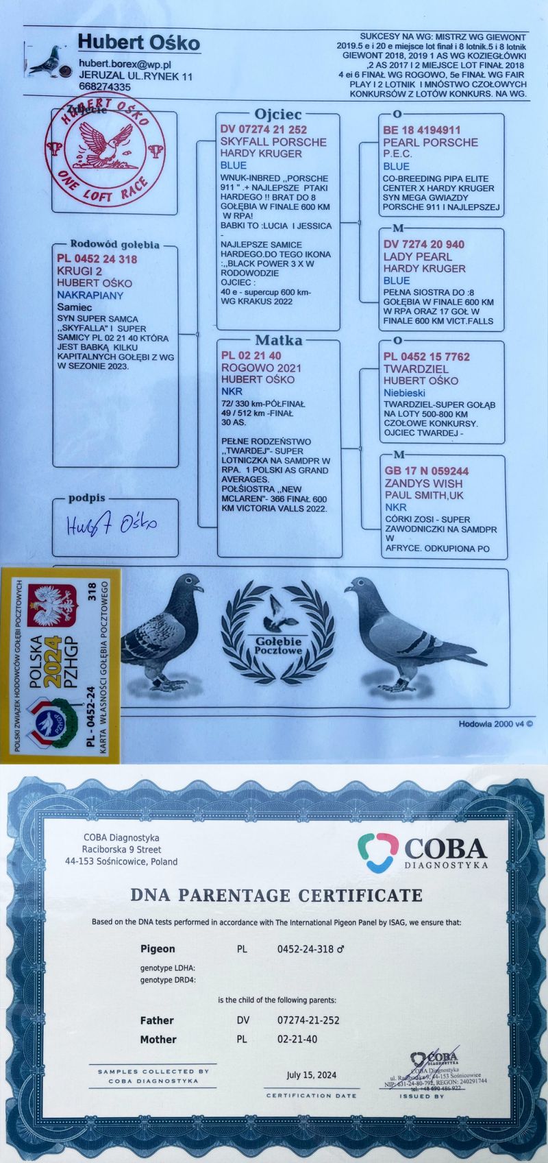 PL-0227-25-959 PORSCHE x WALTERKA Hubert Ośko - certyfikat DNA