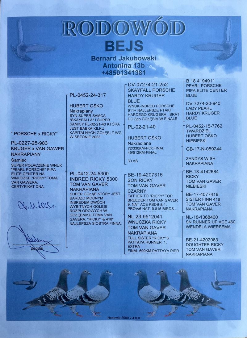 PL-0227-25-983 PORSCHE x RICKY Hubert Ośko - Tom van Gaver - certyfikat DNA